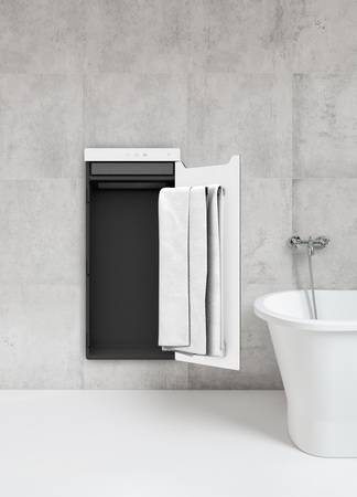 Mit 30 mm Wandaufbau bei Einbau in die Vorwand fügt sich Zehnder Zenia in die Badarchitektur ein. Die Strahlungswärme seiner Infrarot-Glasheizfläche sorgt dabei für die Grundtemperierung, der integrierte Heizlüfter für schnelle Wärme bei Bedarf. Hinter der Infrarot-Glasheizfläche können Textilien getrocknet werden, wobei die Schnelltrocknungsfunktion die Keimbelastung auf feuchten Badtextilien verringert. Darüber hinaus sorgt die Infrarot-Glasheizfläche mit Soft-Close-Funktion für Ordnung im Bad, da hinter ihr bis zu zwei große Badetücher oder vier Handtücher verborgen werden können.