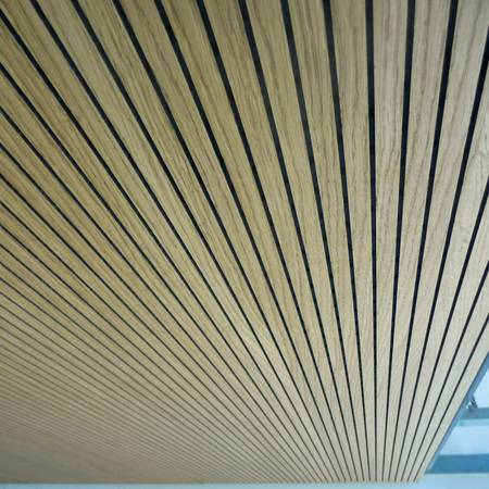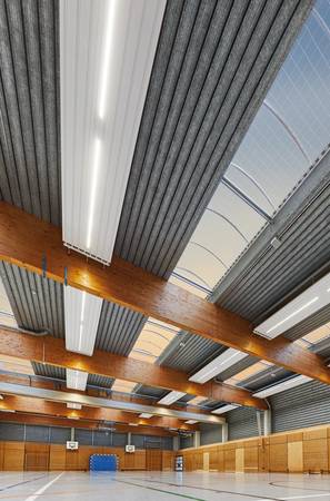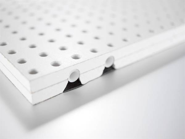 Ästhetik kann mit der fugenlosen Heiz- und Kühldecke Varicool in Holzoptik auch im Rahmen der Flächentemperierung umgesetzt werden. Das Deckensystem besteht hierzu aus perforierten und geschlitzten Gipsfaserplatten, die mit einem Echtholzfurnier versehen sind. Die Wärmeübertragung wird durch die auf der Rückseite der Verkleidungsplatten angebrachten Heiz- und Kühlregister erzielt. Diese bestehen aus Kupferrohrmäandern, die in Aluminium-Wärmeleitprofile eingepresst und mit Stabilisatorschienen fixiert sind. Auf diese Weise wird die gesamte Decke vollflächig aktiviert und eine Kühlleistung von 56 W/m² (T = 8 K) erreicht. | www.uponor.de/de-de/service/zent-frenger-energy-solutions