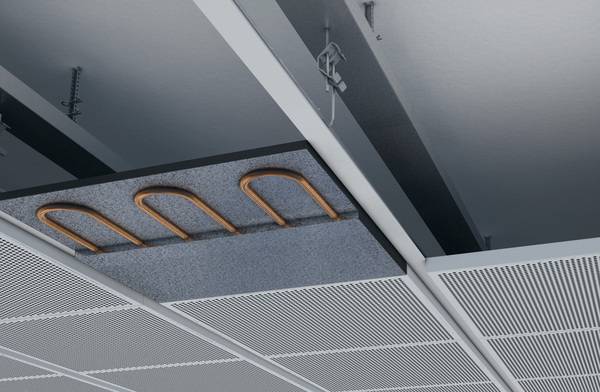 Für die Umsetzung als geschlossene Metalldecke bietet das Unternehmen die Produktausführung Varicool Carbon A. Hierbei werden aus Kupferrohrmäandern bestehende Heiz- und Kühlregister in eine Matrix aus hochwärmeleitfähigem Grafit eingebettet. Anschließend werden die leichten Registerplatten in die Deckenverkleidung eingeklebt. Die Befestigung ist dann im Bandraster-, Klemm- oder Einhängesystem sowie als Kassettendecke im Einlegesystem möglich. Fertig angeschlossen und hydraulisch abgeglichen erreicht die Decke eine Kühlleistung von 94 W/m² (T = 8 K) sowie eine Heizleistung von 133 W/m² (T = 15 K).