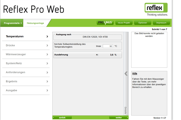 • Die Windows-Software Reflex Pro Win bietet auch ohne Internetanbindung die komfortable Nutzung des vollen Leistungsumfangs zur Auslegung von Systemen zur Druckhaltung und Wärmeübertragung.