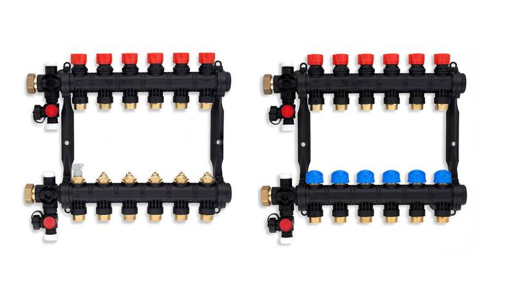 Der Heizkreisverteiler aus Kunststoff zeichnet sich durch ein geringes Gewicht aus und eignet sich hervorragend für den Heiz- und Kühlbetrieb. Der faserverstärkte hochwertige Kunststoff ist langlebig und bietet gute Isolationseigenschaften hinsichtlich Geräuschen, Kondensat und Wärmeverlusten. Dank der Segmentbauweise passt sich der Roth Thermaset Heizkreisverteiler flexibel vielfältigen Einbaugegebenheiten an. Eine hohe werkseitige Vormontage inklusive Dichtheitsprüfung erlaubt eine schnelle Installation und gewährt ein Höchstmaß an Sicherheit. Der Roth Thermaset ist für zwei bis zwölf Heizkreise erhältlich.