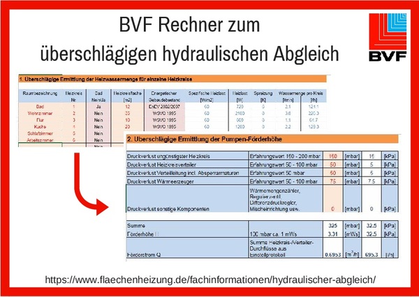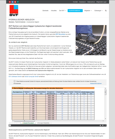 BVF: Webtool für hydraulischen Abgleich bei Flächenheizungen