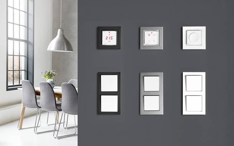 Als weiterer Design-Vorteil kann der Wandrahmen der 24-V-Thermostate im Unterputz zudem gegen passende Schalterrahmen nahmhafter Hersteller wie Bush-Jäger, Gira, Merten ausgetauscht werden. Das harmonische Gesamtbild wird auf diese Weise nochmals zusätzlich verstärkt.