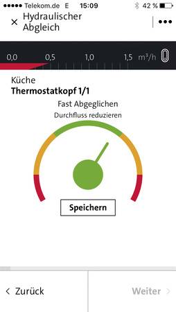 Zunächst wird der Nullvolumenstrom ermittelt, dafür werden alle Ventile geschlossen. Für den Abgleich wird jeweils ein Heizkörperventil geöffnet, abschließend wird der Basisvolumenstrom mit zwei offenen Ventilen ermittelt. Die einzelnen Schritte muss man sich aber nicht merken, die App fordert den Benutzer leicht verständlich zu allen erforderlichen Handgriffen auf. - Kann ich auch mit absperrbaren Rücklaufverschraubungen abgleichen?