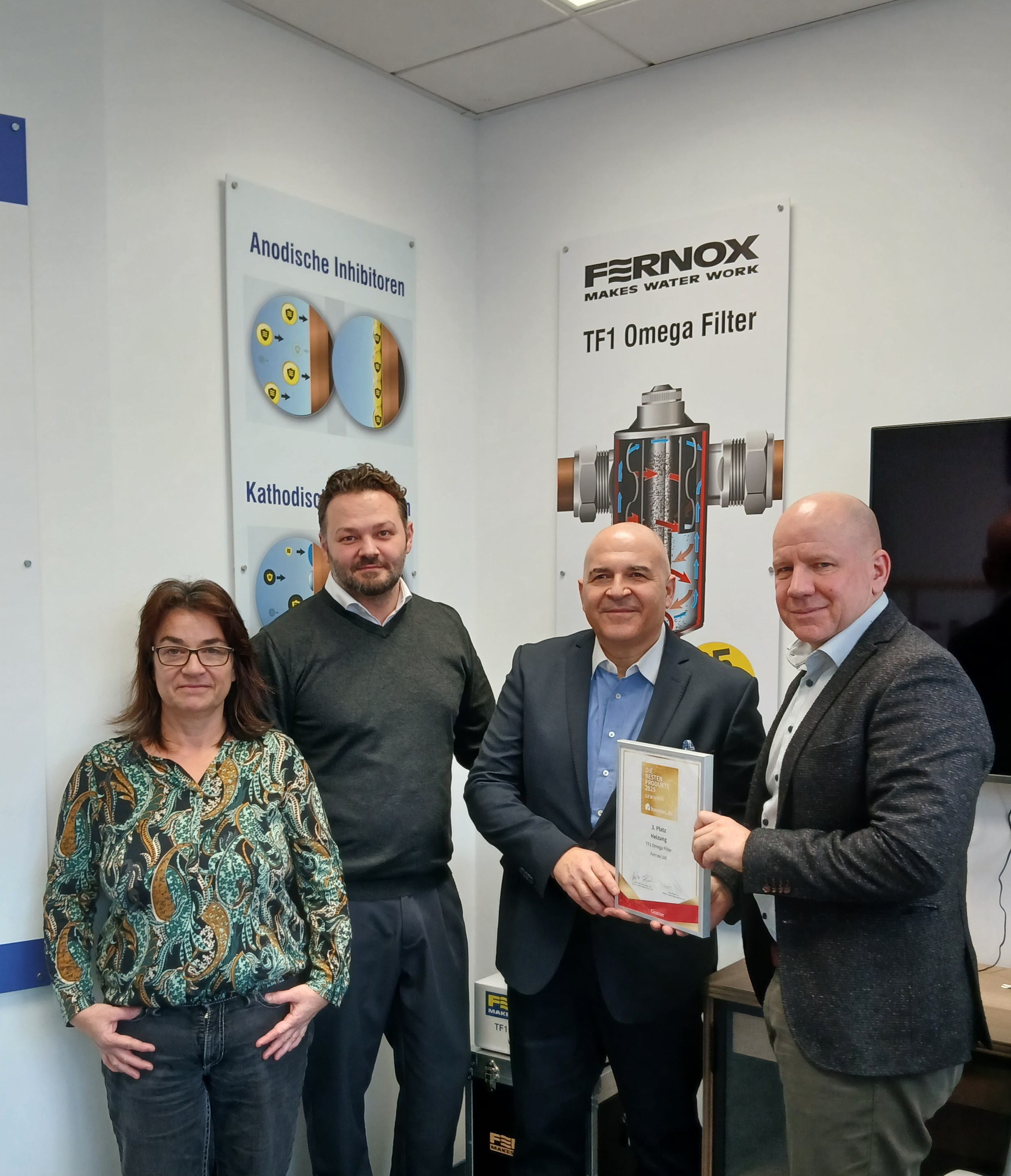 Im November durfte Fernox in seinem Büro in Langenfeld die Gewinnerurkunde für den Award „Die besten Produkte 2025“ von Haustec.de voller Stolz entgegennehmen. CEO Charel Marais nahm die Auszeichnung gemeinsam mit Kenan Görgülü, DACH Sales Director, sowie Isabell Firlus, Inside Sales Clerk, persönlich entgegen.