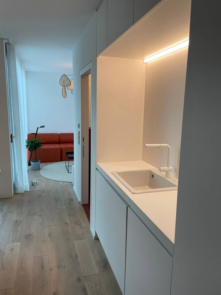 Das passt in die von livingunits praktizierte Gebäude-Philosophie, die T2-Häuser unter Nachhaltigkeits-Gesichtspunkten zu bauen. Bei der Auswahl von Produkten und Baumaterialien wird darauf ein besonderes Augenmerk gelegt. So spielen die Faktoren Langlebigkeit und die Möglichkeit von Recycling eine große Rolle. Die Holzständerbauweise ist für die Kunden vorgegeben und auch die Massivholzdiele in Eiche als Boden.