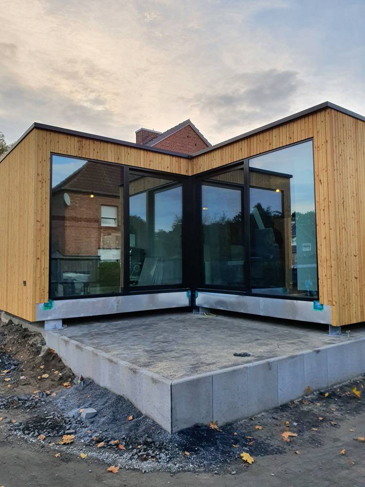 In einem Baugebiet mitten im Zentrum von Harsewinkel im westfälischen Münsterland entstand in zwei Bauabschnitten ein Gebäude-Ensemble aus sechs Häusern in der sogenannten Modul- oder Containerbauweise. Es handelt sich um kleine, frei stehende Häuser mit jeweils 57 m2 Grundfläche. Die erste Bauphase mit zwei Häusern wurde 2022 abgeschlossen. Nun wurden die restlichen vier fertiggestellt.