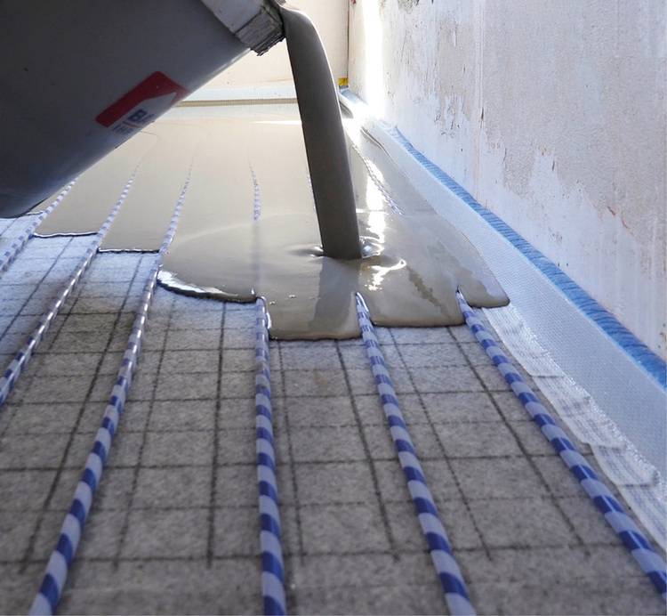 Kombiniert mit Belagsträgern und Entkopplungsmatte ließ sich eine absolute Rissfreiheit der Bodenkonstruktion sowie ein ebener Bodenaufbau gewährleisten. Die Energieverteilschicht ist nach drei Stunden begehbar und lässt sich weiterverarbeiten, sodass ein Fliesenleger nahtlos seine Arbeit beginnen kann.