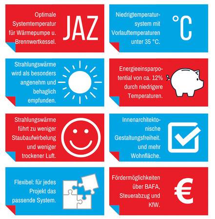 Zudem fördern verschiedene Programme die energetische Sanierung mit Flächenheizsystemen. Es lässt sich also nahezu für jedes Modernisierungsprojekt das passende System mit der passenden Förderung finden, um die Wohnung oder Immobilie zukunftssicher zu machen.