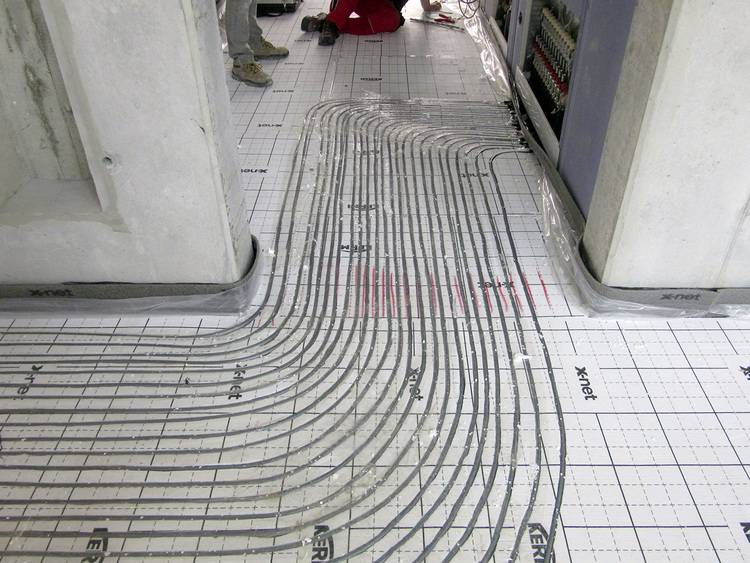 Kermis praxisgerechte Lösung hat bis heute nichts an Aktualität verloren: Kermi x-net connect führt die durchlaufenden Zuleitungen ab dem Verteiler zunächst in eine Dämmebene unter dem Estrich und lässt sie erst bei den zu beheizenden Räumen in die Estrichebene eintauchen. Auf diese Weise wird die Heizungswärme gezielt unter dem Estrich hindurch geleitet und somit unerwünschte Wärmeabgabe unterbunden. Die dabei erreichten Dämmwerte sind mit einer konventionell in den Estrich eingebettet gedämmten Rohrleitung – aufgrund der dann erforderlichen zusätzlichen Estrichdicke – in der Baupraxis nicht zu realisieren.