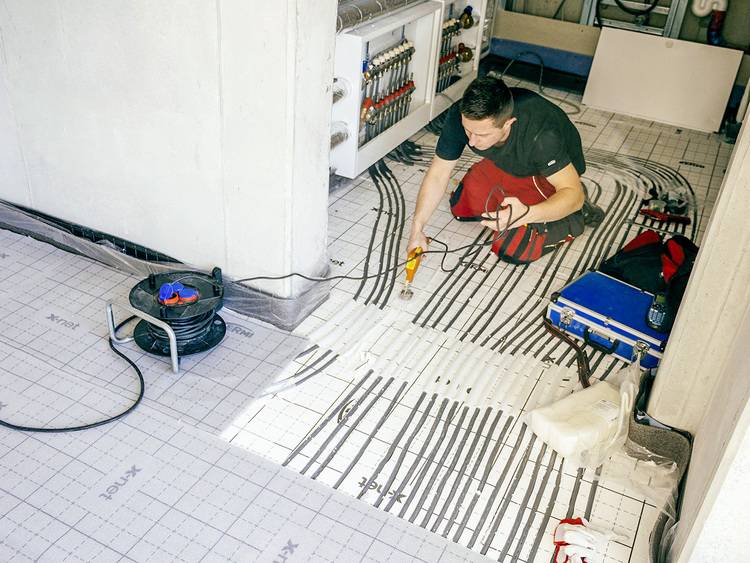 Bei der Installation überzeugt x-net connect als Gesamtlösung inklusive einer sicheren und estrichwasserdichten Ausfädelung der durchlaufenden Zuleitungen aus der Dämm- in die Estrichebene und bietet einen einwandfreien Schallschutz sowie eine normkonforme Installation.