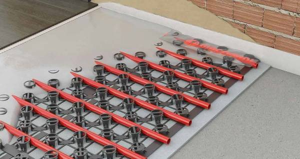 Dank der patentierten Noppengeometrie des dreidimensionalen spinnenartigen Netzes werden die Rohre bei der Verlegung stabil in ihrer Position gehalten. Zusätzlich ermöglicht sie eine optimale Verteilung der Gussmasse. Die Bearbeitung des Estrichs mit Stachelwalzen, um Luftblasen, die sich in den Noppen gebildet haben, zu beseitigen, entfällt
