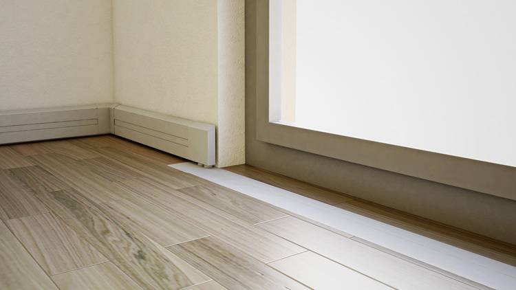 Vor bodentiefen Fenstern oder Terrassentüren kann das System aufgrund der geringen Einbautiefe von 21 mm vor der entsprechenden Öffnung in den Boden eingebaut werden. Bei Fliesen- oder Parkettboden muss durch die geringe Abmessung nicht einmal das Bodenwerk vertieft werden. Sollte der Bodeneinbau nicht möglich sein, gibt es noch die Möglichkeit der Tür-Umführung: Die Heizleiste wird um die Tür herumgelegt.