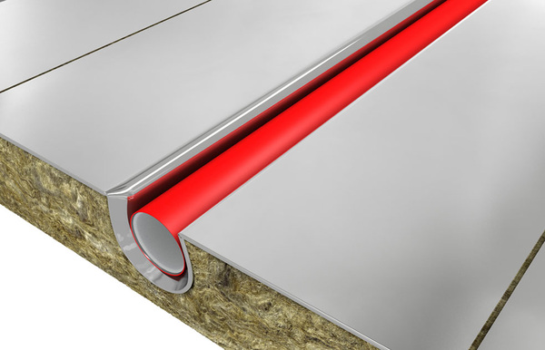 Um die Installation der Rohrleitungen leichter zu gestalten, sind ab Werk eingefräste Rillen, ausgekleidet mit Stahl- oder Aluminiumblechen, vorbereitet. Die Fixierung der Bleche erfolgt durch ein patentiertes mechanisches Verfahren. Dadurch ist eine für den Recycling-Prozess wichtige sortenreine Trennung möglich.