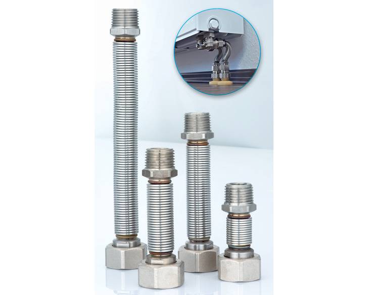 Mit den zwei zusätzlichen Größen ist der flexible Heizkörperanschluss nun auch ein Thema für den Anschluss von Unterflurkonvektoren in Bodenschächten oder von wassergeführten Klimaanlagen und Geräteanschlüssen.