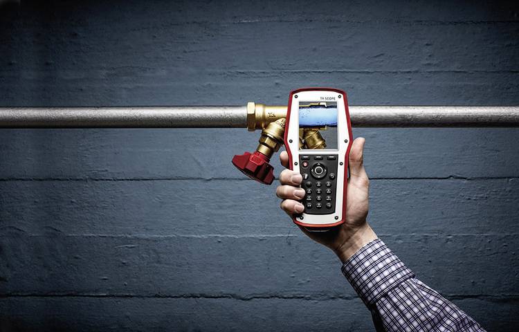 Auf ganz ähnliche Weise gehen die Mitarbeiter nun auch bei den nächsten Verbraucherkreisen vor. Während der Einregulierung des jeweiligen Ventils über das Messgerät wird der Differenzdruck am Referenzventil permanent kontrolliert und über die Durchflussmenge am Partnerventil kompensiert. Dabei gilt: Sobald zwei Kreise aufeinander abgestimmt sind, behalten sie ihr Wassermengenverhältnis auch dann, wenn sich der Druck in der Heizungsanlage verändert. Auf diese Weise lassen sich die Regulierventile eines Gebäudes gemäß dem hierarchischen Prinzip nach und nach einstellen.