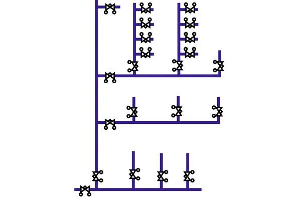 Nach der Einstellung der einzelnen Einheiten eines Steigestrangs müssen bei der Diagnosemethode nun noch die Module untereinander sowie anschließend über das Partnerventil an der Strangwurzel gemeinsam einreguliert werden. So lassen sich die Steigstränge des Gebäudes sukzessive einstellen. Zum Schluss wird mit dem Hauptregulierventil nahe der Heizungspumpe die gesamte Durchflussmenge eingestellt. Damit sind alle Durchflussmengen auf dem gewünschten Wert und der Einregulierungsvorgang ist abgeschlossen.