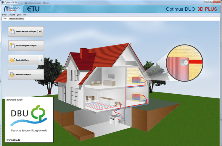 „Optimus Duo 3D“ basiert auf dem von der Deutschen Bundesstiftung Umwelt (DBU) geförderten Forschungsprojekt OPTIMUS zur Ermittlung der Einspar-potenziale durch Optimierung bestehender Heizungsanlagen.
