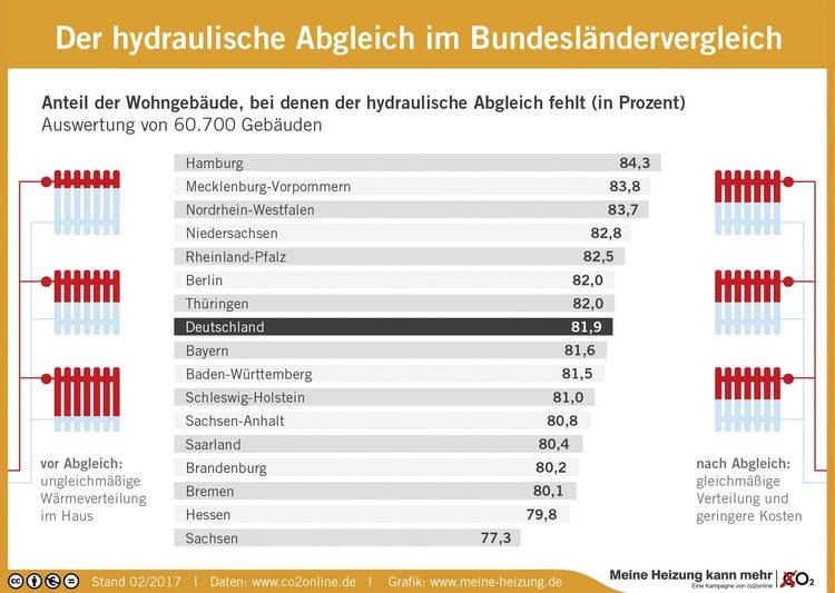 Doch noch immer sind rund 80 % der Heizungsanlagen in Wohngebäuden nicht hydraulisch abgeglichen, hier besteht ein riesiger Bedarf. Pläne des Bundeswirtschaftsministeriums sehen vor, dass bis 2020 jährlich rund 200.000 hydraulische Abgleiche durchgeführt werden.