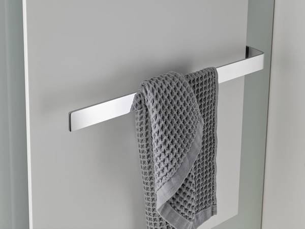 Für kuschelig warme Handtücher sind bis zu zwei Handtuchhalter optional wählbar. Die einseitig offenen Handtuchhalter aus Chrom sind in zwei Varianten erhältlich (430 mm oder 550 mm) und können ein- und wechselseitig angebracht werden.