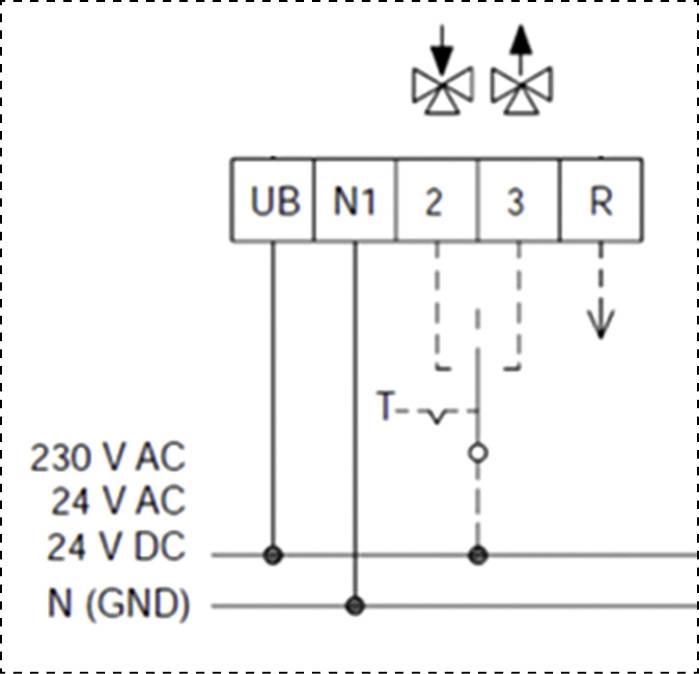 Im Kühlfall verhalten sich Öffnungs- und Schließvorgang entsprechend umgekehrt. Um ein ständiges Öffnen und Schließen zu vermeiden, nimmt man in der Praxis eine Abweichung von +/- 0,5°C um den Sollwert in Kauf (Bild 4).
