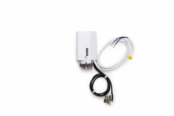 Der hochpräzise Stellmotor erhält sein Ansteuersignal direkt vom Raumtemperaturregler und wird von diesem mit Energie versorgt. Die Vor- und Rücklauftemperaturfühler werden einfach mit Befestigungsclips an den Rohrleitungen aus Polymer-Werkstoff oder Metall-Kunststoffverbund montiert. Weitere Verdrahtungsarbeiten oder eine zusätzliche Spannungsversorgung sind nicht nötig.