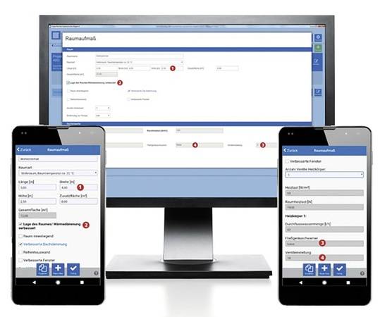 Dafür sollten dem Anwender möglichst praxisnahe Funktionen und Hilfen für die Erfassung der Heizkörper, des Rohrnetzes und der Raumdaten zur Verfügung stehen, die sich auch mobil per Smartphone- oder Tablet-App nutzen lässt.