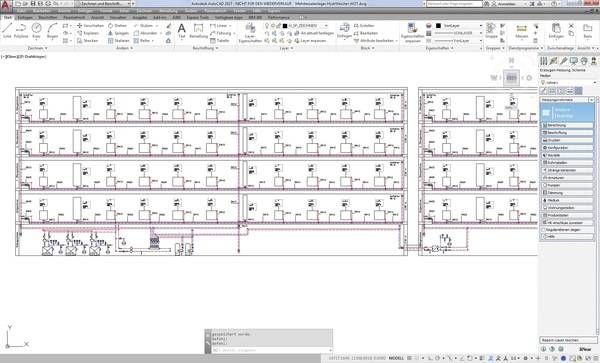 Diese Programme setzen CAD-Kenntnisse voraus und eignen sich insbesondere für große und komplexe Anlagen. Bei der Planung mit diesen Programmen ist der hydraulische Abgleich quasi inklusive. Ermittelt werden u. a. Voreinstellwerte sowie Pumpen-Volumenströme, Rohrdimensionen, Druckverluste, Strömungsgeschwindigkeiten.