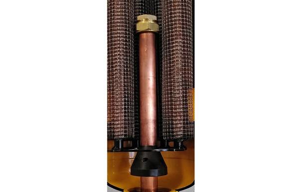 Diese Magneteinheit wurde optimiert: Im Tauchrohr sitzt der Magnet, der mit dem Zugelement noch leichter nach unten bewegt wird. Dies hat Spirotech mit einem Ablasshahn verbunden, der um 360 Grad in jede Position schwenkbar ist.