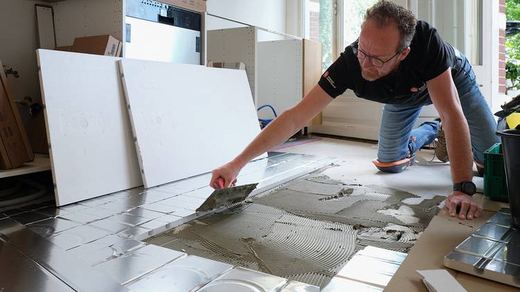 „Dieses System ist ideal für Renovierungsprojekte“, sagt Hans Steenbeek. „Es lässt sich schnell installieren und erfordert keinen Nassestrich. Auf aufwändige Maschinen und Fräslärm kann verzichtet werden. Unsere Monteure verlegen es direkt auf dem bestehenden Boden – sogar auf Holzbalkendecken.“