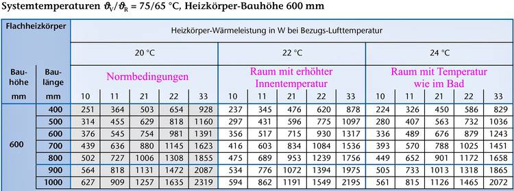 Ein Heizkörper kann unterschiedlichen Bedingungen unterworfen werden. Getestet wurde er jedoch bei einer Vorlauftemperatur von 75 °C und einer Rücklauftemperatur von 65 °C. Das reicht allerdings als Festlegung für eine allgemeine Testbedingung nicht ganz aus. Würde man diesen Heizkörper nämlich beispielsweise in einer Sauna mit 95 °C Raumtemperatur testen, so würde man feststellen, dass der Heizkörper mit seinen 75 °C eher eine kühlende Wirkung hat.