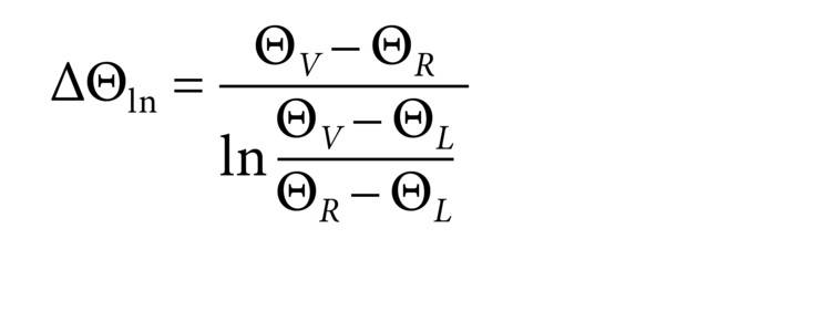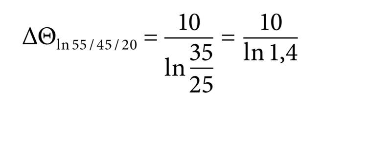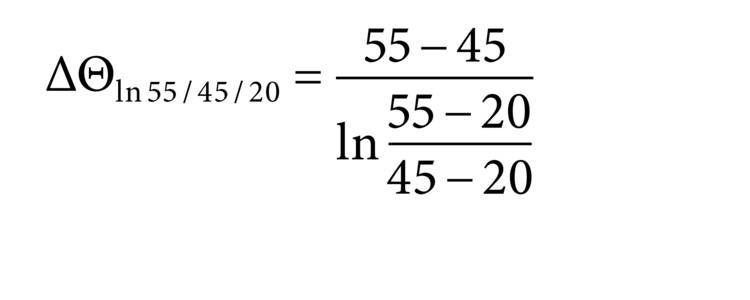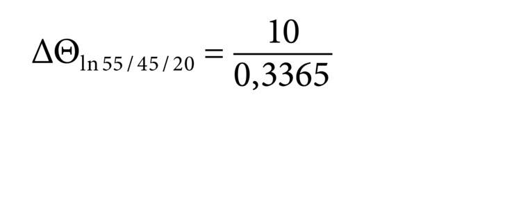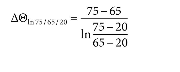 - ΔΘln = logarithmisch gemittelte Übertemperatur in Kelvin