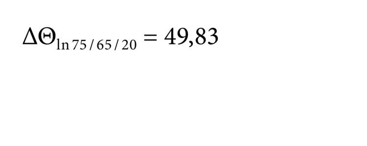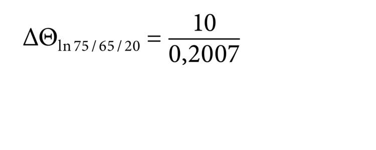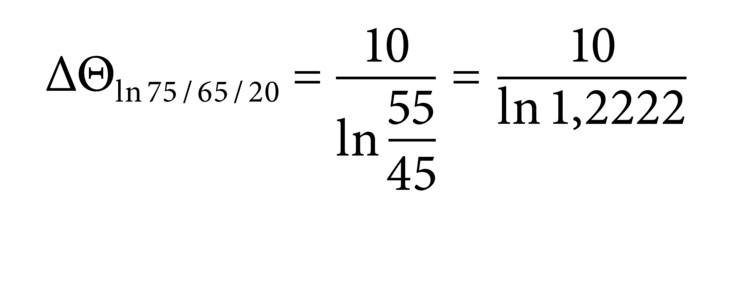 - Zuerst soll der Wert ΔΘln für die Normbedingungen, also 75/65/20, ermittelt werden.