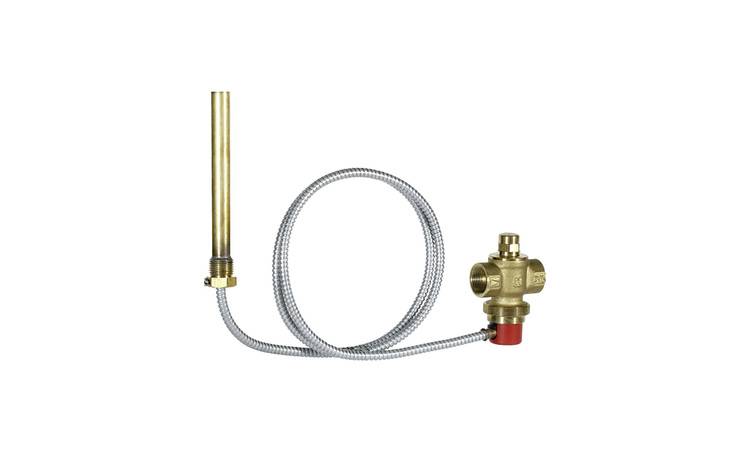 Die TAS gehört normalerweise in den Kaltwasserzulauf, also in Fließrichtung vor den Kessel. Nur in Ausnahmefällen, wenn der Kesselhersteller es fordert, wird das Bauteil in den abfließenden Teil, also in Fließrichtung hinter den Kessel geschaltet. Die Kapillarleitung zwischen Fühler und Ventilkopf sollte zum Schutz vor falschem Alarm nicht an den heißen Bauteilen der Feuerstätte entlanggeführt werden.