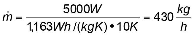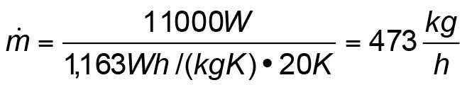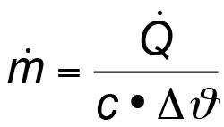 In den 50er-Jahren hatte man andere Ansätze, um ein Haus warm zu kriegen, als im Jahr 1995. In grauer Vorzeit konnte man noch mit hohen Vorlauftemperaturen rumprassen. Öl oder sogar Kohle waren die wichtigen Energielieferanten. Da waren dann auch hohe Spreizungen zwischen Vor- und Rücklauf durchaus akzeptabel. Die 11.000 Watt Leistung werden daher mit einer Spreizung von 20 Kelvin angenommen. Und das ergibt nach der uralten, aber wahren Formel "Kuhistgleichemmalcemaldeltatheta" den anzunehmenden Massenstrom.
