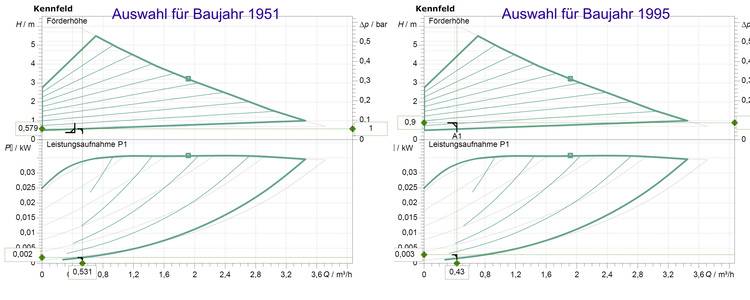 Für die Pumpe im Uraltbau sind also 473 kg/h nötig, in der jüngeren Immobilie werden 430 kg/h notwendig werden.