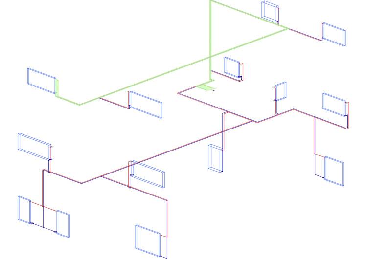 Ganz anders agierte man im Jahr 1995. Die Leitungen sollten sich gut in den Baukörper integrieren und nicht viel Platz einnehmen. Sie mussten schließlich auch noch gedämmt werden. Daher wurden höhere Druckverluste als in der Vergangenheit zugelassen, denn „moderne“ Umwälzpumpen konnten es schon richten.