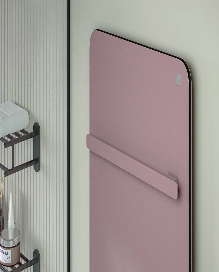 Die Vorder- und Rückseite des Zehnder Vitalo bestehen aus lackiertem, korrosionsbeständigem Aluminium. Zehnder Vitalo besitzt zudem einen umlaufenden, sanft abgerundeten Rahmen aus Polyamid, der ihn vor äußeren Einflüssen wie Feuchtigkeit effizient schützt und versiegelt. Dieser funktionale Rahmen bildet auch das charakteristisch markante Profil des Zehnder Vitalo. Seine glatte und geschlossene Oberfläche kann leicht gereinigt werden und entspricht dabei den in Sanitärbereichen gewünschten Hygieneanforderungen, zertifiziert durch das Hygieneinstitut Ruhrgebiet.