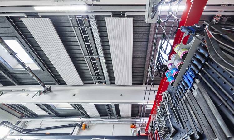 Zehnder Deckenstrahlplatten versorgen Werkstatt des E-Werks Mittelbaden mit Wärme