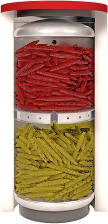 Das gesamte PCM nimmt am Phasenwechselprozess teil und erlaubt so eine effiziente Wärmeübertragung (schnelle Ladung und Entladung) auch bei sehr kleinen Temperaturunterschieden. Die Ausgestaltung als hybrider Wärmespeicher ermöglicht durch den Wärme- oder Kälteträger eine hohe Dynamik und eignet sich daher unter anderem für Kälte- und Eisspeicher, Wärmepumpensysteme, BHKWs, Power-To-Heat-Anlagen und Energiespeicher aller Art. Die zigarrenförmigen Ellipsoide können über eine 1 ½“ Standardmuffe in alle bestehenden Wärme- und Kältespeicher eingebracht werden, ordnen sich automatisch an und erlauben wegen ihrer Form eine optimale Durchströmung zur Steigerung der Anlageneffizienz.