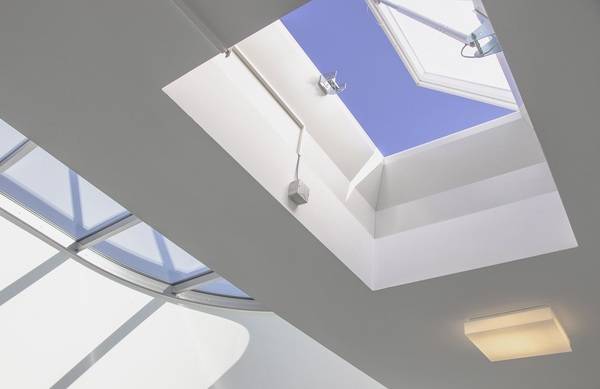 Bei Rauchdetektion in einer der Nutzungseinheiten wird die TSA sofort automatisch ausgelöst. Der Zuluftventilator sorgt dabei gezielt für frische Luft im gesamten Treppenraum. Diese verdünnt die eventuell eingedrungenen Rauchgase und spült sie durch eine geöffnete Lichtkuppel im Treppenraumkopf aus (Bild 4). Dadurch wird ein leichter Überdruck aufgebaut, der das Eindringen von Rauch über Undichtigkeiten zwischen dem Rettungsweg und der Brandetage zuverlässig verhindert. Auf diese Weise bleibt der Treppenraum als Rettungsweg nutzbar.