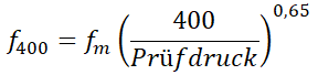 Werden Geräte mit einem von 400 Pa abweichenden Druck geprüft, müssen die Leckluftraten entsprechend umgerechnet werden. Zur Umrechnung ist folgende Formel anzuwenden: