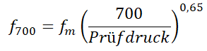 Auch bei der Prüfung in Überdruck müssen die Leckluftraten auf den Prüfdruck von 700 Pa umgerechnet werden, wenn der Prüfdruck davon abweicht. Die Formel dazu lautet: