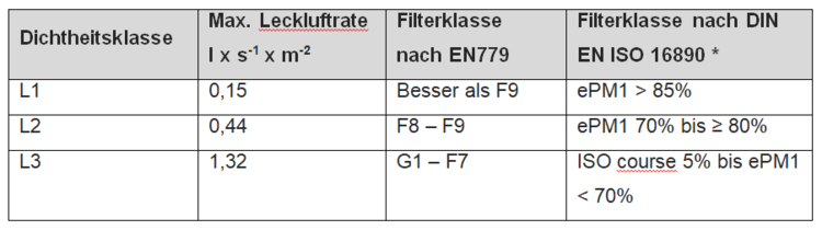 Die Leckluftrate wird hier bei einem Unterdruck von 400 Pa ermittelt. Die Einteilung der Gehäuse erfolgt in Dichtheitsklassen: