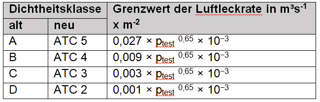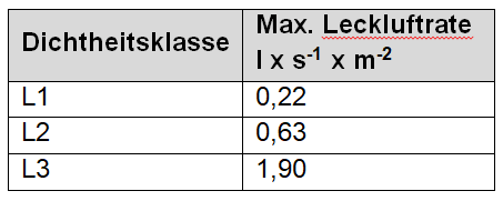 Die Leckluftrate bei einem Überdruck von 700 Pa wird ebenfalls den Dichtheitsklassen zugeordnet.