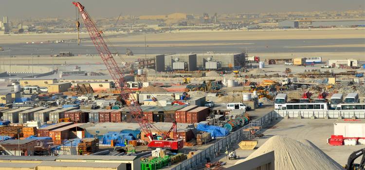 Das Außenthermometer zeigt +25 °C, die Sonne brennt, es ist Januar. Im Emirat Katar am Persischen Golf wird es auch im Winter nicht kalt. Wir stehen also eher sommerlich bekleidet am Bürocontainer mitten auf der künstlich aufgeschütteten Halbinsel, auf der irgendwann Flugzeuge starten und landen sollen.