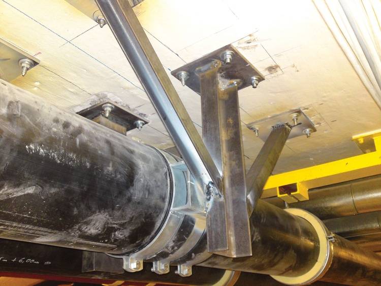In den meisten Fällen gilt: keine gleitende Konstruktion ohne Festpunkte. Der Rohrleitung muss die Richtung vorgegeben werden, in die sie sich ausdehnen soll. Ein Fest- oder Fixpunkt fixiert die Leitung an einem Punkt und sorgt auf diese Weise für eine definierte Ausdehnung. Festpunkte können auch gesetzt werden, um gerade Strecken in kürzere Teilabschnitte zu unterteilen und so für eine Dehnungsbegrenzung zu sorgen. Bei Steigleitungen haben Festpunkte die Aufgabe, das Eigengewicht der Rohrleitung aufzunehmen. Rohrschellen übernehmen in diesem Fall nur eine Führungsfunktion. Eine weitere Funktion von Festpunkten ist es, Schwingungen bzw. Vi-brationen der Leitung zu minimieren und Druckschläge auszugleichen.