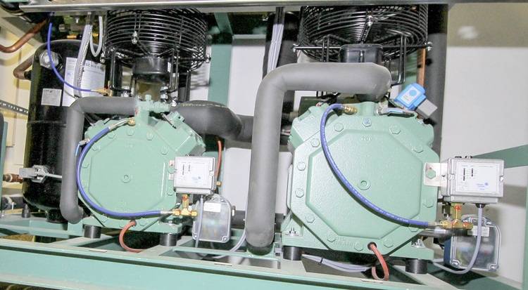 Halbhermetische Verdichter werden ab einer bestimmten Größe als 4-Zylinder ausgeführt. Diese Verdichter bieten den Vorteil, dass der Saugkanal von zwei Zylindern abgesperrt werden kann und sich die Leistung damit um 50 Prozent reduziert. Zwar fällt die Leistungszahl dadurch etwas ab, aber ein entsprechend kleinerer Verdichter würde auch keine spürbar bessere Leistungszahl erzielen (Bild 1).