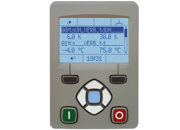 Die notwendige Regelung kann entweder mithilfe eines externen Regelgerätes oder durch Verwendung moderner Frequenzumrichter mit integrierter Kälteregelung erfolgen. Die zweite Variante hat den Vorteil, dass die Regelung ohne Zusatzgerät und ohne Zusatzaufwand für Verkabelung vorhanden ist. Die Einstellung ist sehr übersichtlich als Klartext am Bedienteil des Kälte-Frequenzumrichters, siehe Bild 3.