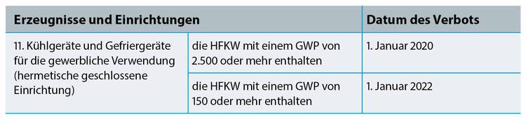 Für die gilt gemäß Artikel 11 und Anhang 3 der aktuellen F-Gase-Verordnung folgendes Verbot des Inverkehrbringens:
